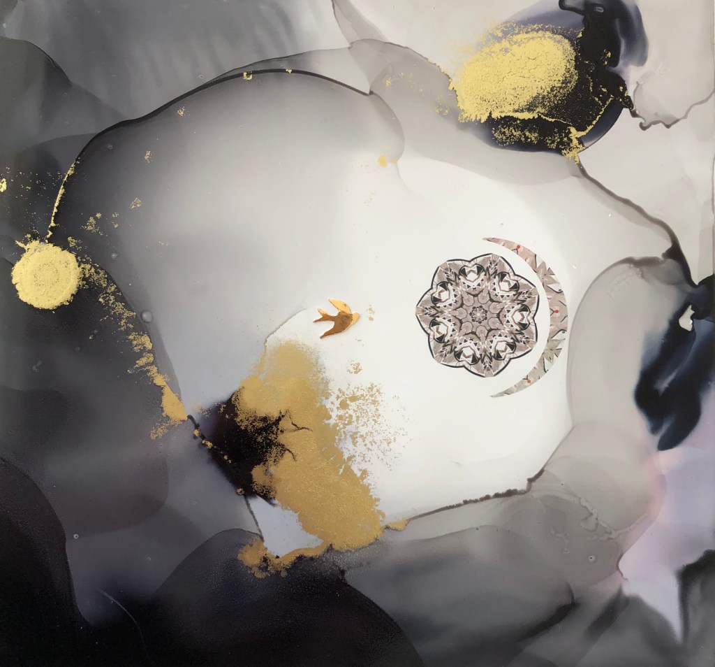 She was flying through the Forest of Shadows when a divine brilliance of light encircled Mother Earth. Every place, every part, every cell was illuminated by the flash. For a split second the brightening absorbed all of the colours and then a split second later all of the colours had been returned, infused with a DIVINE UNDERSTANDING of JOY and Wisdom. An alchemical radiance had touched everything leaving a mandala fingerprint of light, love and understanding in all of the spaces and places in-between, even in the Forest of Shadows. This is where she discovered the mirror of light. At first she was apprehensive and nervous but that quickly transformed into excitement and delight as the feeling of pure acceptance became her true reflection. The was the gold standard of inner knowing. The gold standard of inner knowing that resides in the Forest of Shadows.